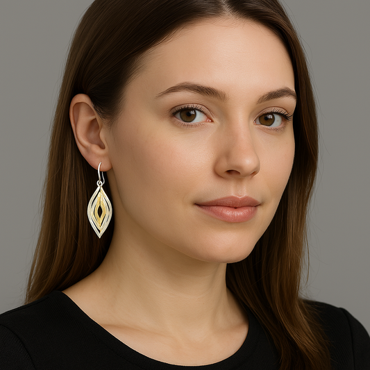 Sterling Silver Triple Movable Almond Earrings with Tumbaga - Two-Tone Design