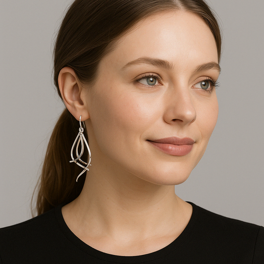 Sterling Silver Triple Intertwined Wire Earrings – Smooth Oval Design