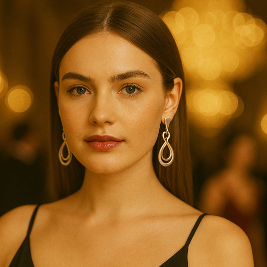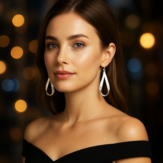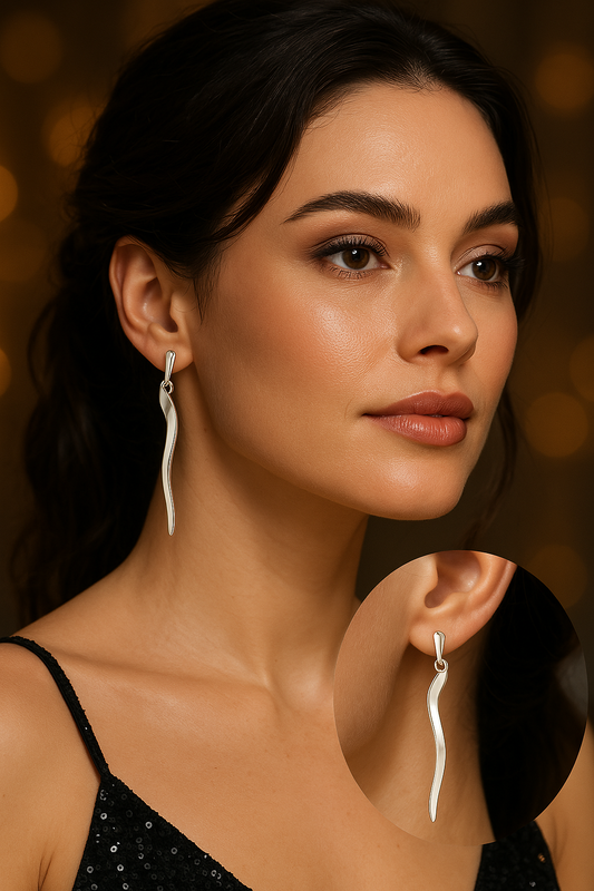 Sterling Silver Large Glossy Silhouette Drop Earrings with Ring