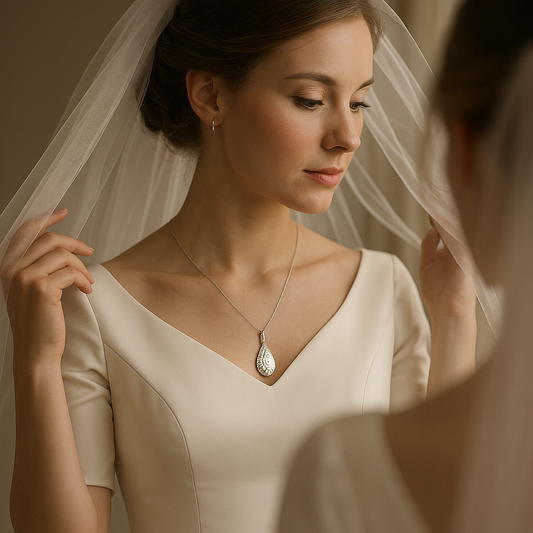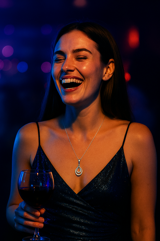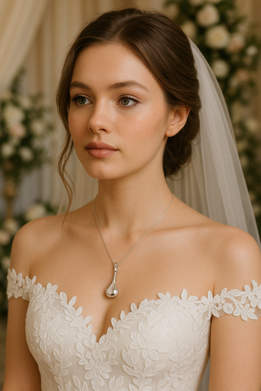 Glossy Crushed Pear Sterling Silver Pendant with Band