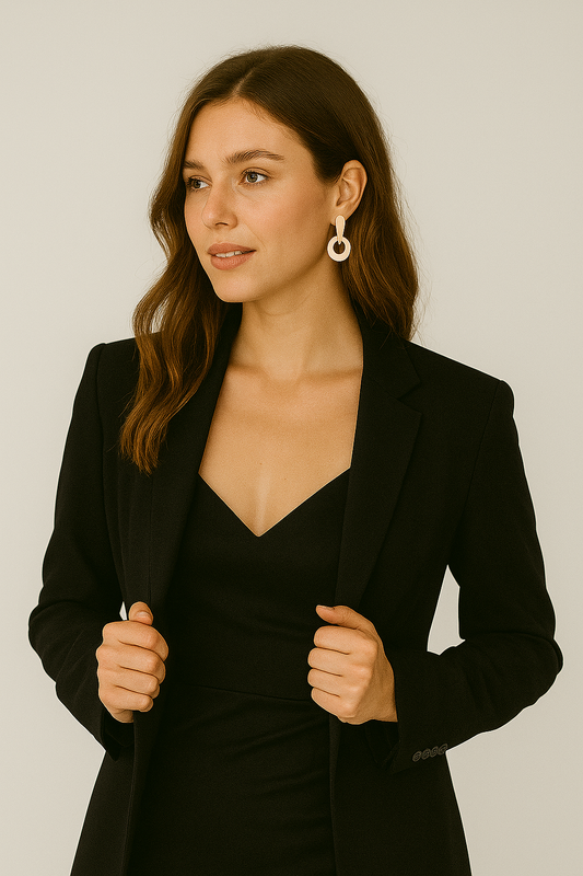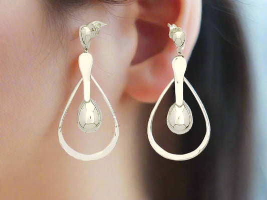Sterling Silver Large Glossy Silhouette Drop Earrings with Ring
