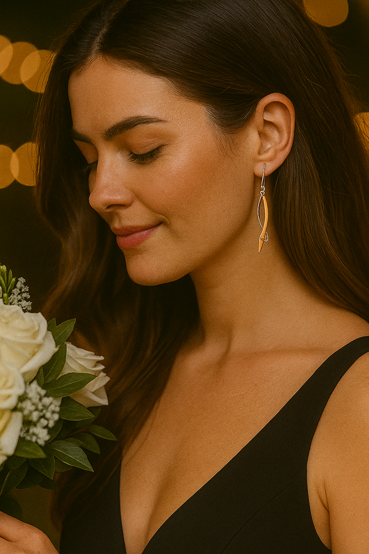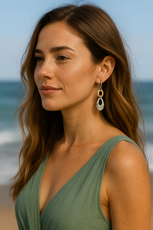 Sterling Silver Open Top Drop Earrings with Tumbaga Accents – Two-Tone Design
