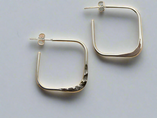Sterling Silver Folded Hammered Drop Earrings with Smooth Lunnet