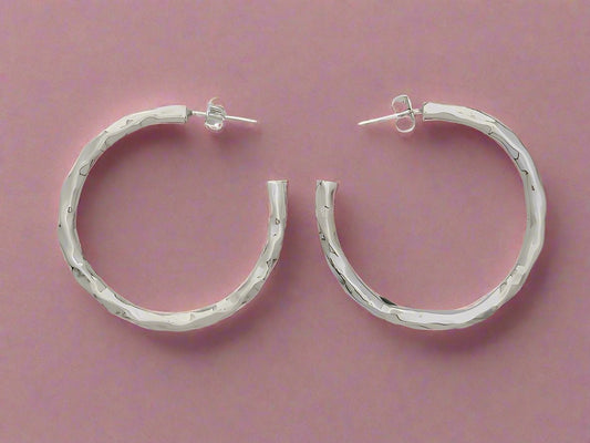 Sterling Silver Medium Hammered Tube Oval Earrings