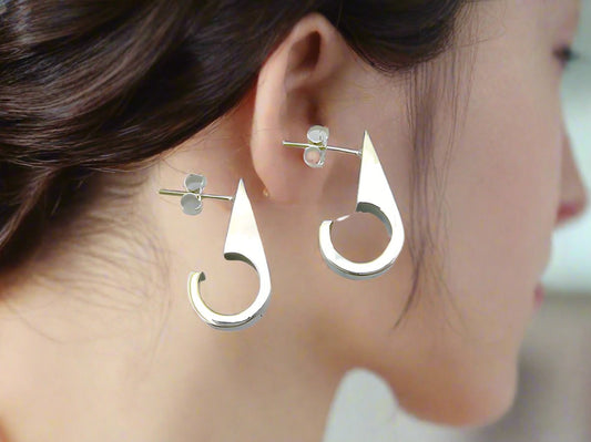 Sterling Silver Mart/Silhouette Drop Earrings with Smooth Tongue and Drop