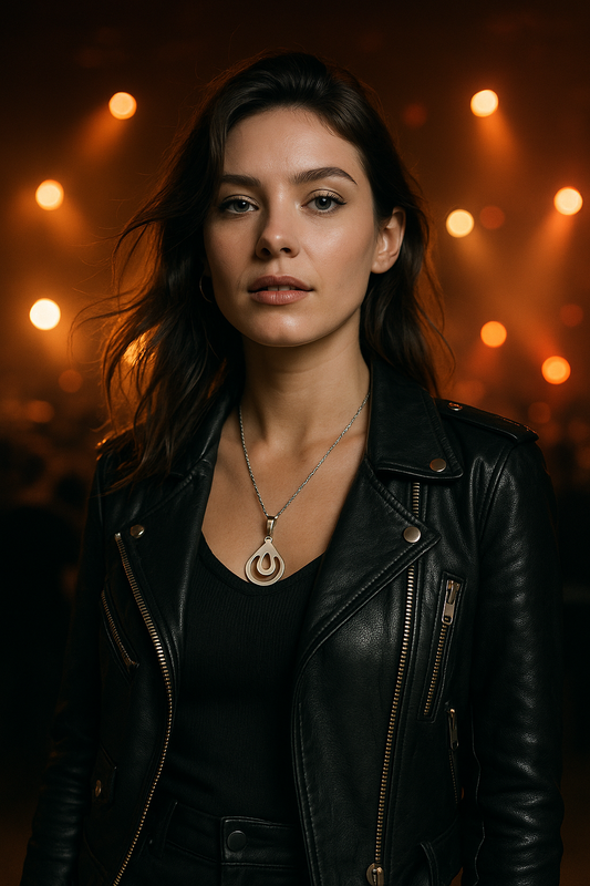Glossy Crushed Pear Sterling Silver Pendant with Band