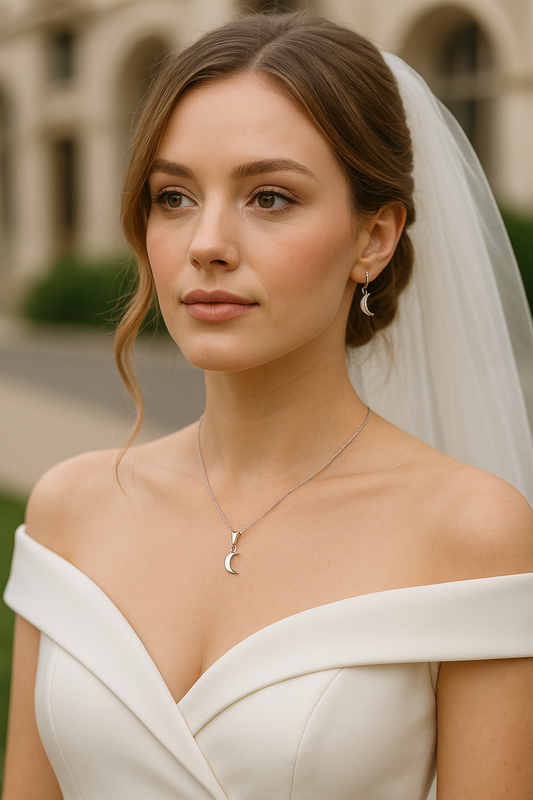Sterling Silver Smooth Heart Moon Pendant Set