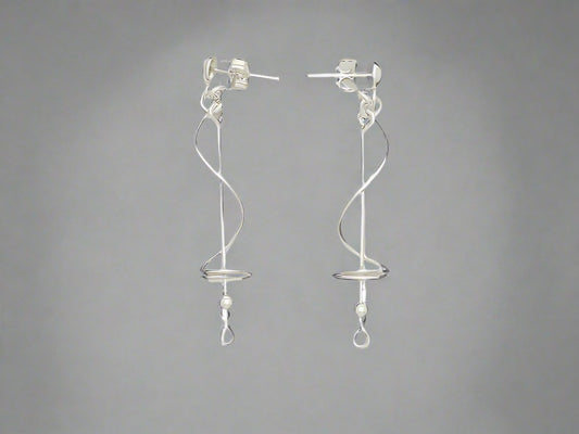 Sterling Silver Earring with Stick and Coiled Wire with Half Casq