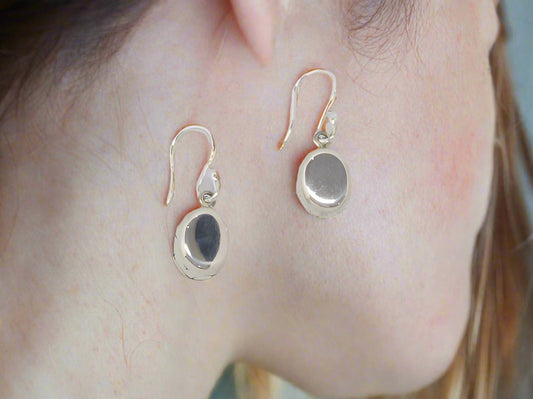 Sterling Silver Cardboarded Oval Earrings with Unlevel Girl Design