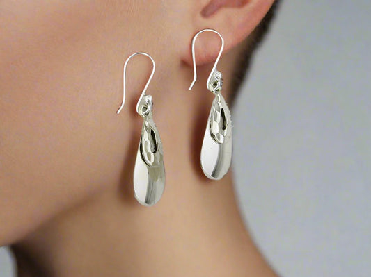 Sterling Silver Medium Smooth Drop Earrings with Hollow and Ring