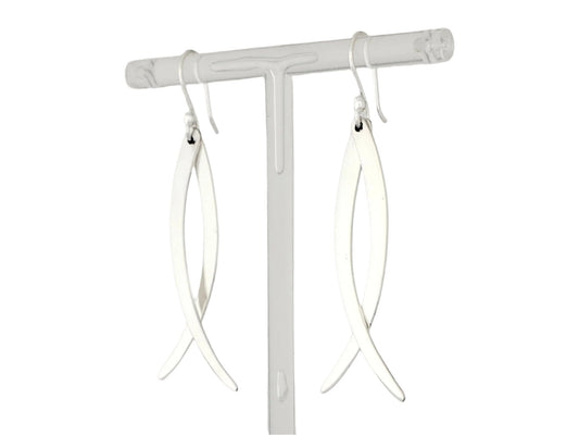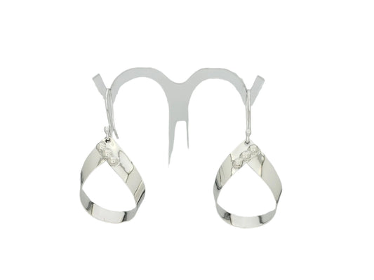 Sterling Silver Folded Hammered Drop Earrings with Smooth Lunnet