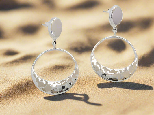 Sterling Silver Smooth Crushed Drop Earrings with Ring