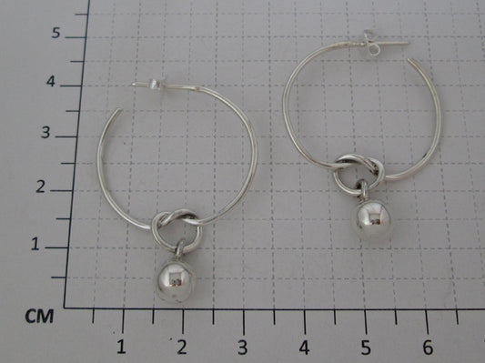 Sterling Silver Hoop Earrings with Knot and Pendant Ball