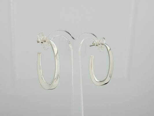 Sterling Silver Medium Gloss Flat Oval Earrings with Ring