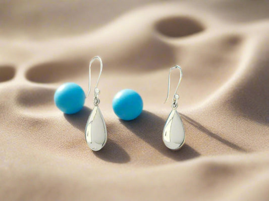 Sterling Silver Mini Smooth Drop Earrings with Hammered Drop