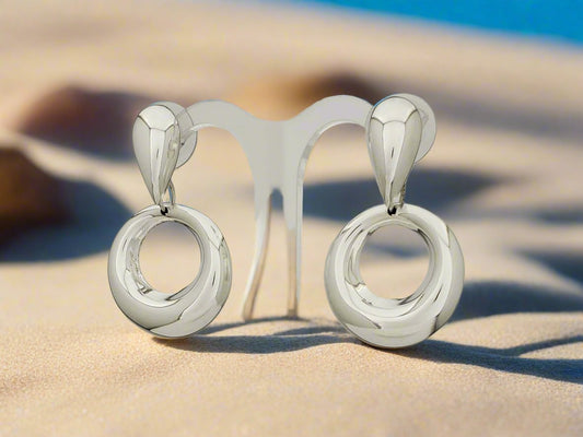 Sterling Silver Medium Gloss Flat Oval Earrings with Ring
