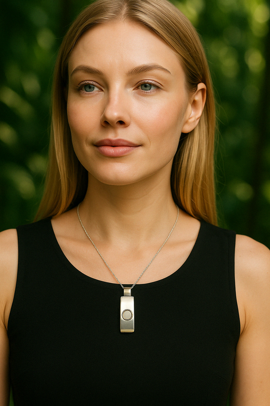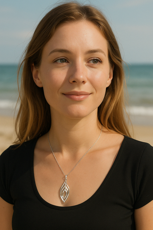 Sterling Silver Sea Inlaid Triangle Pendant with Bar