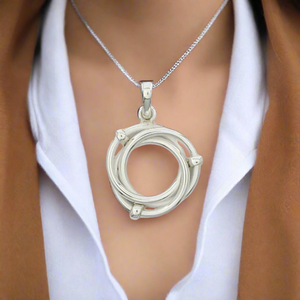 Sterling Silver Mart Round Pendant with Two Wire Hoops