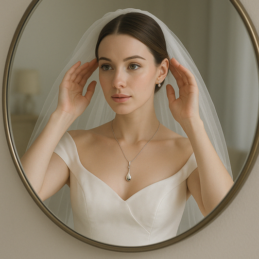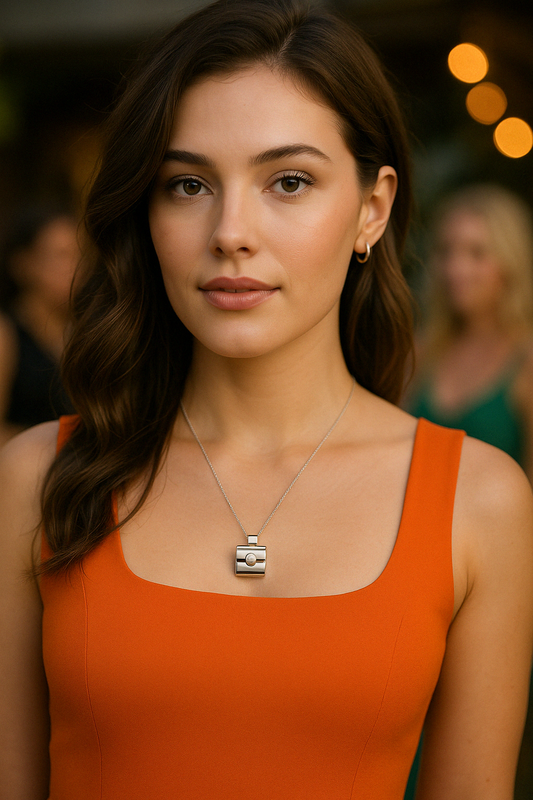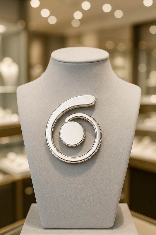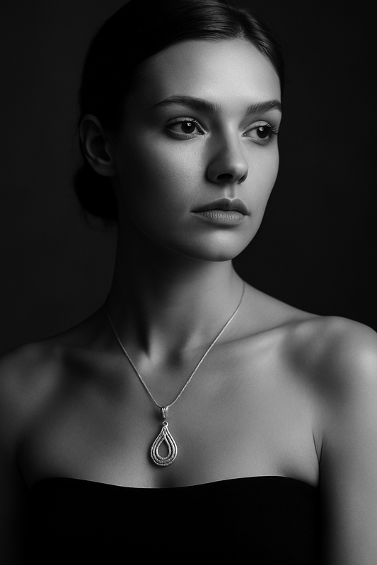 Glossy Crushed Pear Sterling Silver Pendant with Band