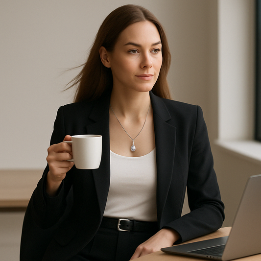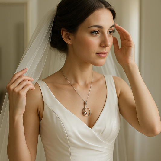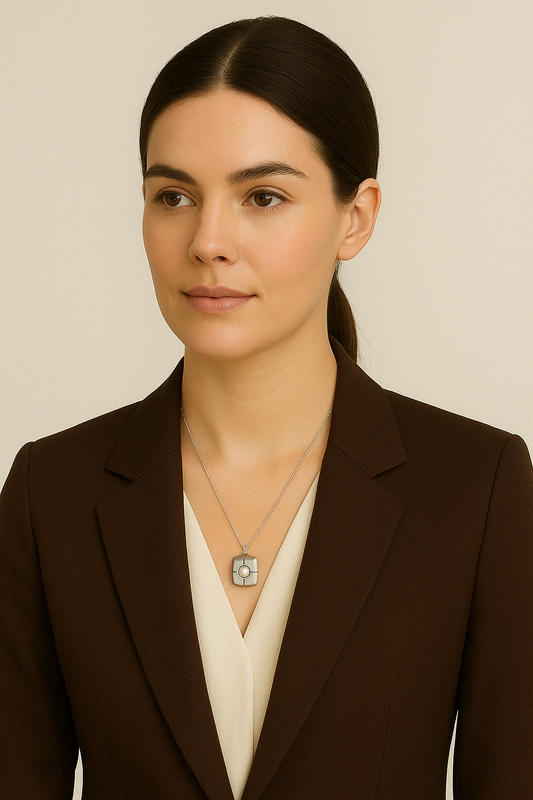 Sterling Silver Square Half-Moon Pendant with Stripe Pearl